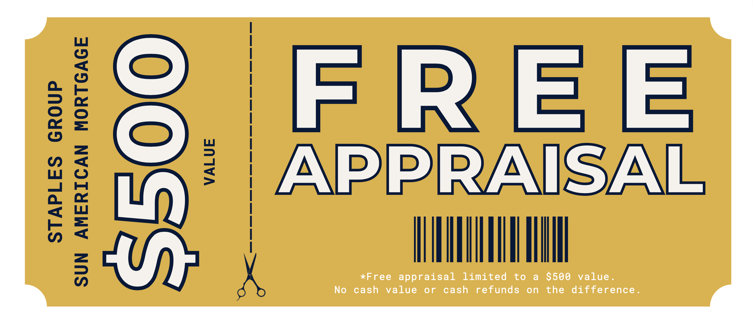 *Free appraisal limited to a $500 value. No cash value or cash refunds on the difference. Typically, this lender credit ranges from $400 to $500 depending on which loan you qualify for. This credit is ONLY available for applicants whose subject property is in Utah. Applicants must present coupon to the Sun American Mortgage loan officer at time of application. Only loans closed and funded by Sun American Mortgage are available to receive this lender credit. Offer expires on 12/31/2023. Company NMLS# 160265.